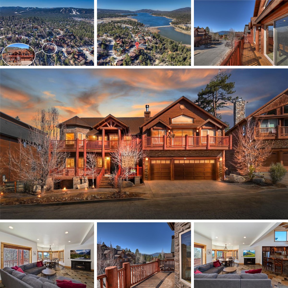 Step into an exceptional mountain escape, a standout 6-bedroom, 4-bathroom mountain retreat in the highly sought-after Castle Glen Estates, where luxury, location, and income potential come together beautifully. This home is not only a stunning place to escape—it is also a successful, established vacation rental, making it an exceptional opportunity for both lifestyle buyers and investors. Soak in panoramic lake views from the covered front porch and front balcony, the perfect front-row seat for Big Bear’s fireworks shows, and golden-hour sunsets. Enjoy coffee sunrises on the back deck where the home backs to Baker’s Pond, offering a peaceful, natural backdrop that elevates the mountain ambiance. Designed for comfort and unforgettable gatherings, the home features a main-level primary suite, plus an additional bedroom and bathroom on the main floor, ideal for guests or easy single-level living. The spacious layout flows effortlessly into a show-stopping game room complete with a wet bar, pool table, ping pong, and shuffleboard—a guest-favorite amenity that keeps bookings strong year-round. Outdoor living truly shines with a fully fenced backyard, classic horseshoe pit, and an expansive back deck with hot tub and BBQ, perfect for après-ski evenings or summer nights under the stars. A 3-car garage provides ample space for vehicles, lake gear, and mountain toys. Centrally located, this home is just a short drive to ski slopes, Big Bear Lake, hiking trails, shopping, and dining, making it a prime destination in every season. Whether you’re seeking a luxury mountain getaway, a turnkey short-term rental, or a property that delivers both memories and income, 42324 Eagle Ridge is a rare opportunity that truly sparkles in one of Big Bear Lake’s most desirable neighborhoods.