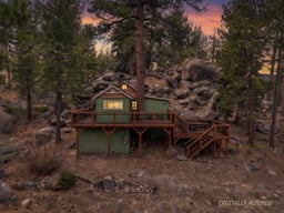 A fully remodeled cabin tucked among towering pines and granite boulders just .3 miles from Boulder Bay Park and 1 mile from the Castle Rock Trailhead. Modern updates blend seamlessly with alpine charm: vaulted ceilings, stacked-stone fireplace, rebuilt kitchen and bath, new roof, and a multi-level deck that feels like living in the trees. 1 bedroom + bunk sleeping area + enclosed sunroom offer flexible space for guests. No rear neighbors and undeveloped treed acreage behind create the feeling of a private forest hideaway—wake up to forest light, spend the day on the lake or the trail, and finish with dinners or winter stargazing on the deck. Close to the Village, ski resorts, and year-round outdoor recreation.